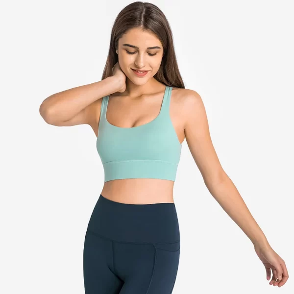 Sports Bra with strappy cross open back reduce shoulder pressure and give you a sexy look.