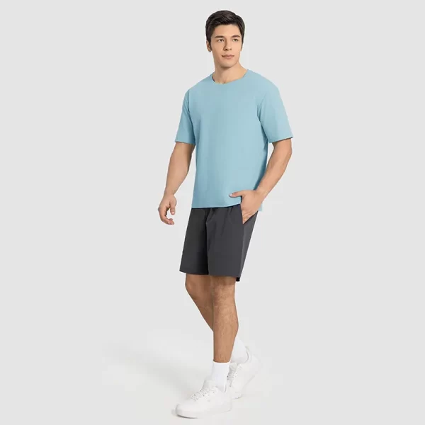 Crafted from 100% lightweight polyester, this men’s casual short-sleeve tee combines breathability, vochtafvoerend, and a stretchy fit for ultimate comfort during workouts or daily wear. The minimalist round neck, relaxed hem, and smooth fabric ensure a flattering, versatile look for sports, reis, or layering.